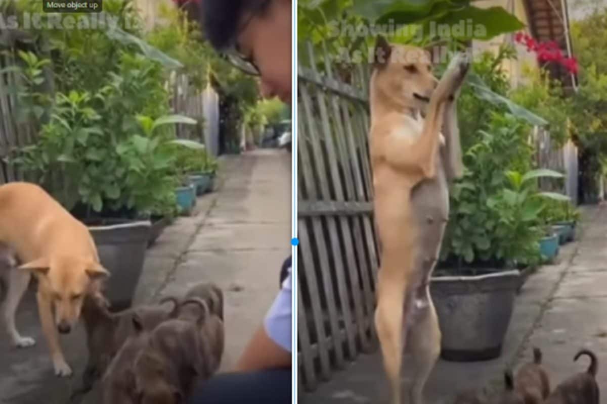 शख्स ने बच्चों को खिलाया खाना, एहसान से भर गई डॉगी मां, पंजे उठाकर दिया आशीर्वाद